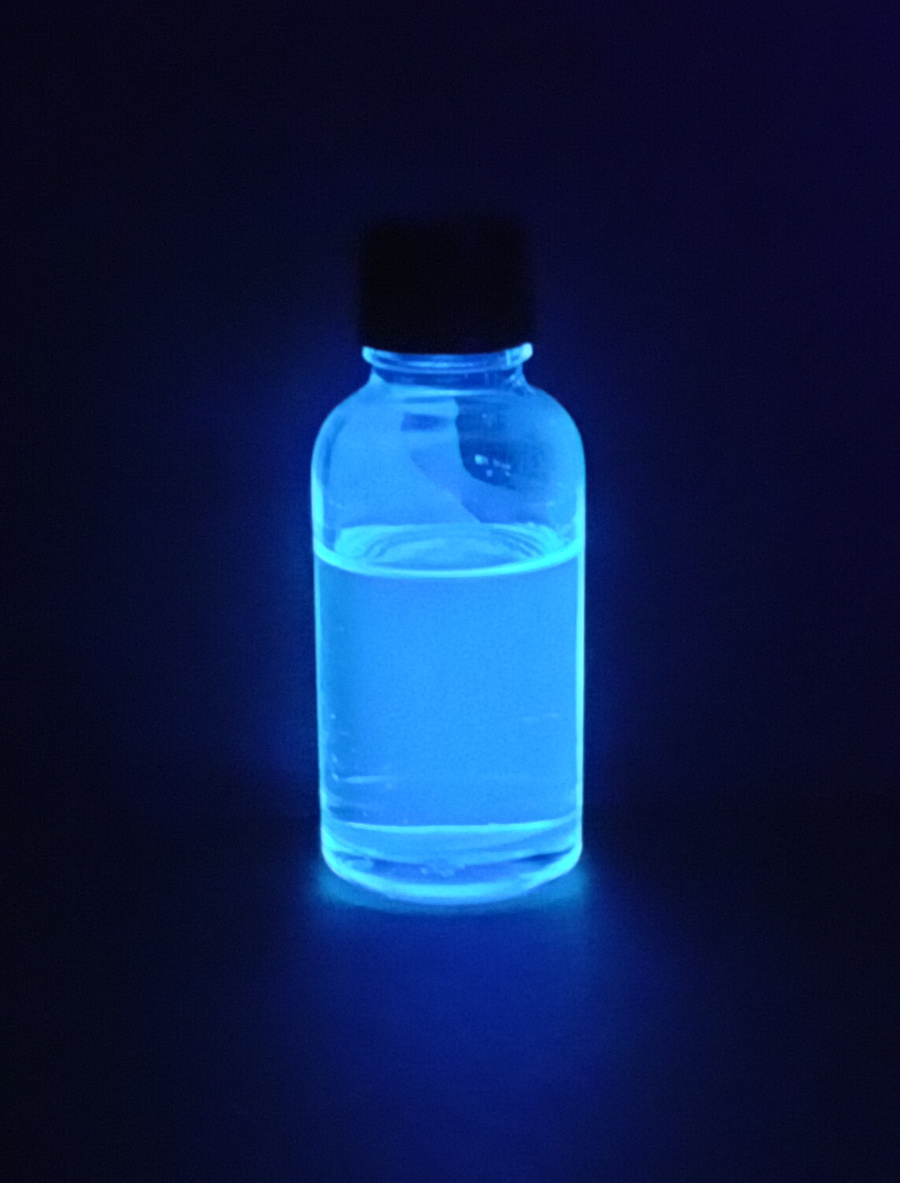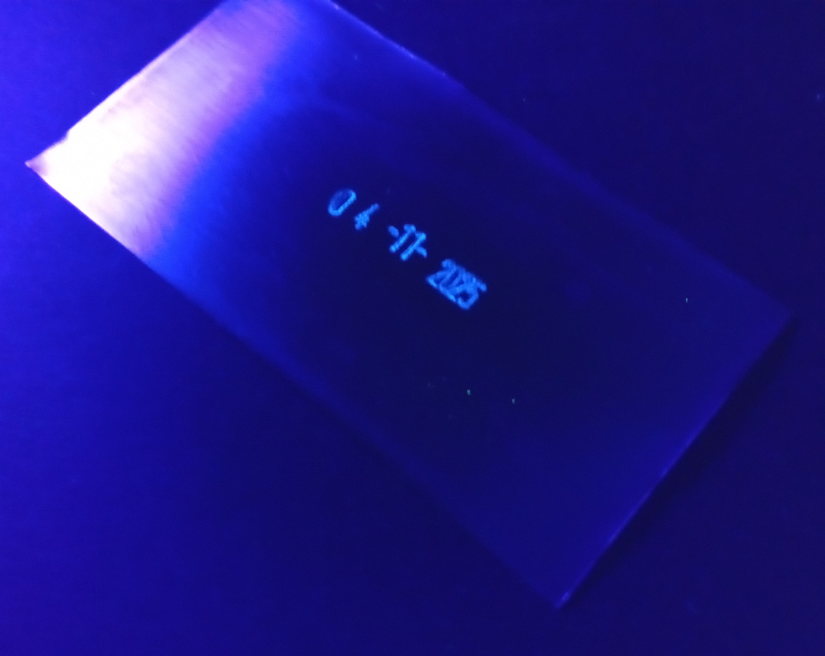 GRAFMETAL's invisible fluorescent UV-glowing STAMP INK will make objects covered with it glow bright blue when illuminated with UV light, while remaining transparent and colorless in visible light.