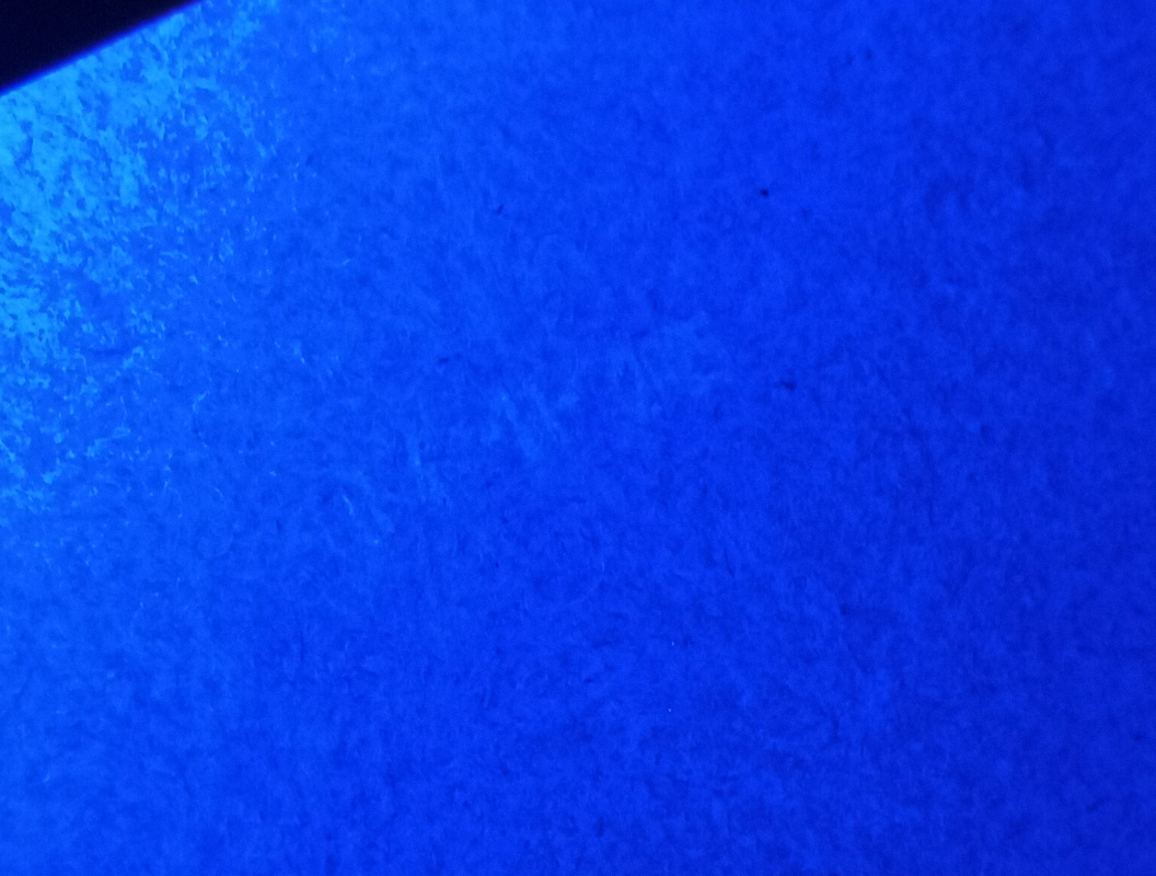 The ink is not suitable for surfaces already covered with similar fluorescent materials, such as white paper or white clothing, as the contrast will then be low, as shown in the photo below.