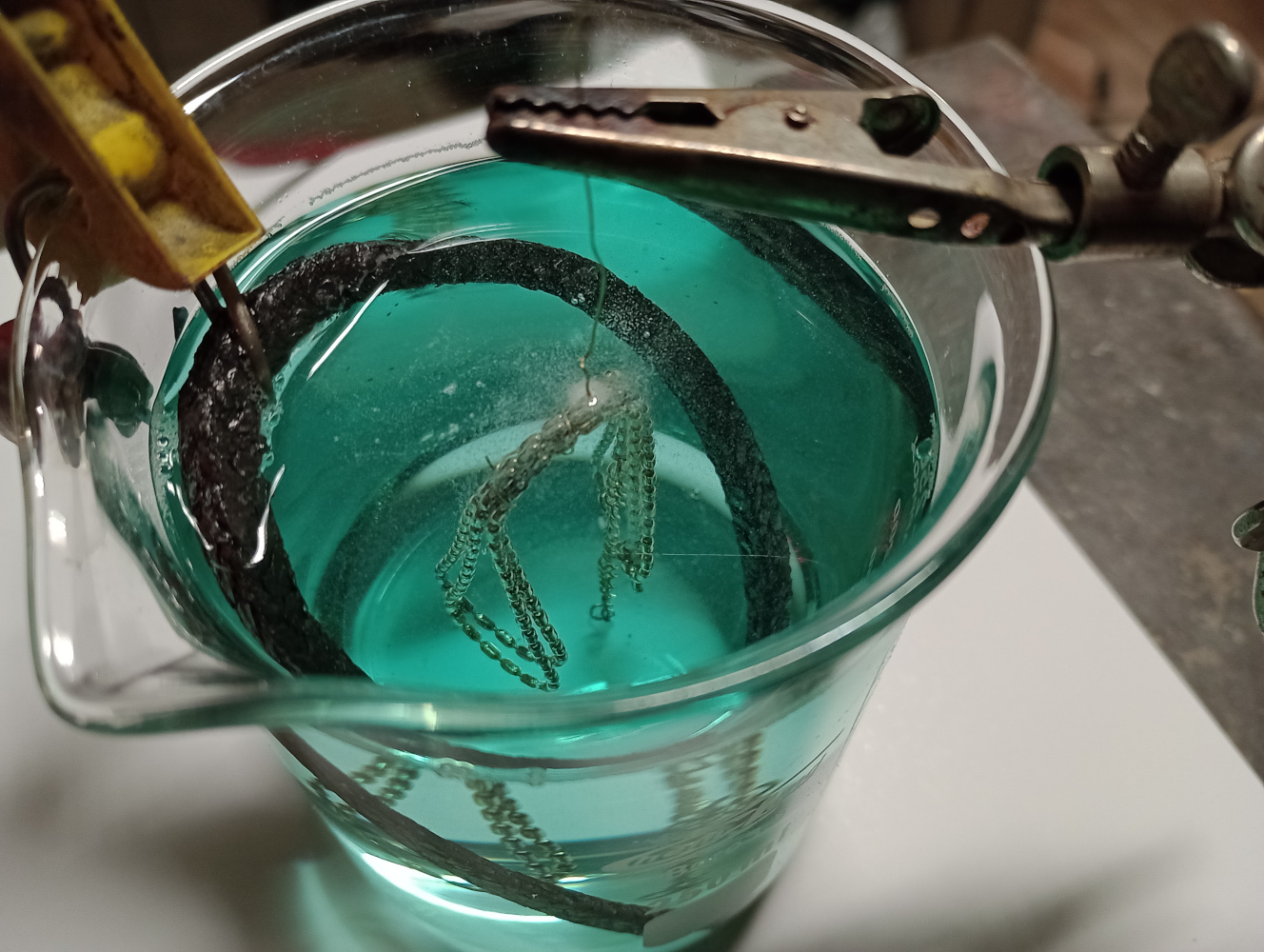 Poniżej pokazano zdjęcia procesu elektrolizy.